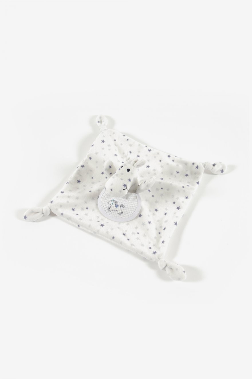 Ce ravissant doudou cheval gris fera le bonheur des petits garçons comme des petites filles. Son bavoir en toile Aïda 7pts/cm permet de broder au point de croix une date de naissance, un prénom, un motif… Il dégage une grande douceur avec son tissu velours imprimé d'étoiles . Il permet l'éveil des sens de bébé, idéal pour les câlins.  Il constitue une magnifique idée cadeau pour une naissance et deviendra à coup sûr le compagnon préféré de Bébé.